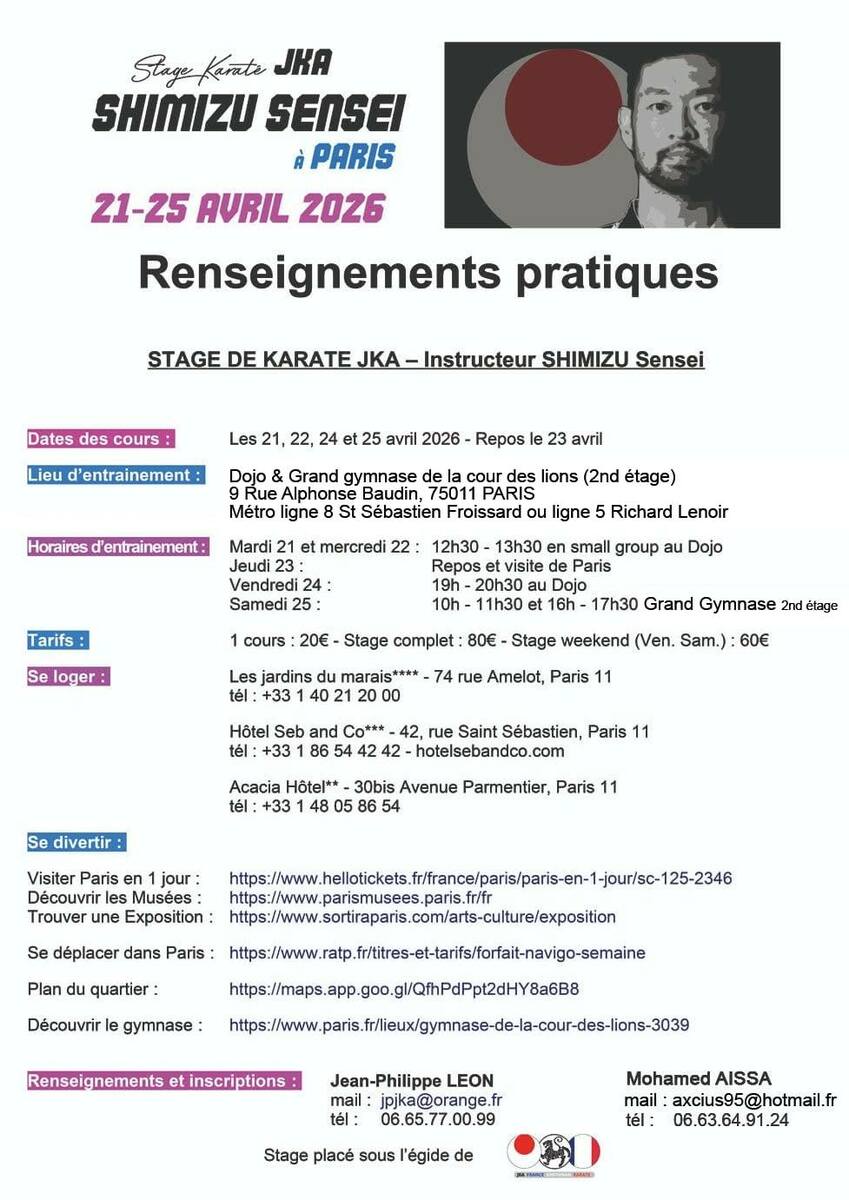 Shimizu Sensei présent du 21 au 25 avril au Dojo Paris 11
